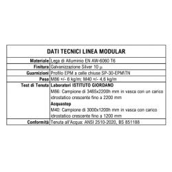 Carico idrostatico testato fino a 1200 mm di colonna d’acqua